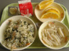 学校給食の献立は、栄養士の先生、町当局、学校の職員が集まって協議してきめます。 おいしくて、栄養バランスがよく、季節の野菜や地元の生産物を使っての毎日の献立です。