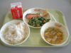 学校給食の献立は、栄養士の先生、町当局、学校の職員が集まって協議してきめます。 おいしくて、栄養バランスがよく、季節の野菜や地元の生産物を使っての毎日の献立です。
