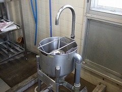 ガス炊飯器です。90人分のご飯を炊くことができます。